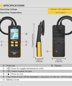 - Oil Temperature Measurement: The built-in temperature sensor measures and displays the actual oil temperature, reflecting the engine’s operational status and load. It ensures measurement results are within the normal working temperature range. The temperature is switchable: ℃, ℉.
