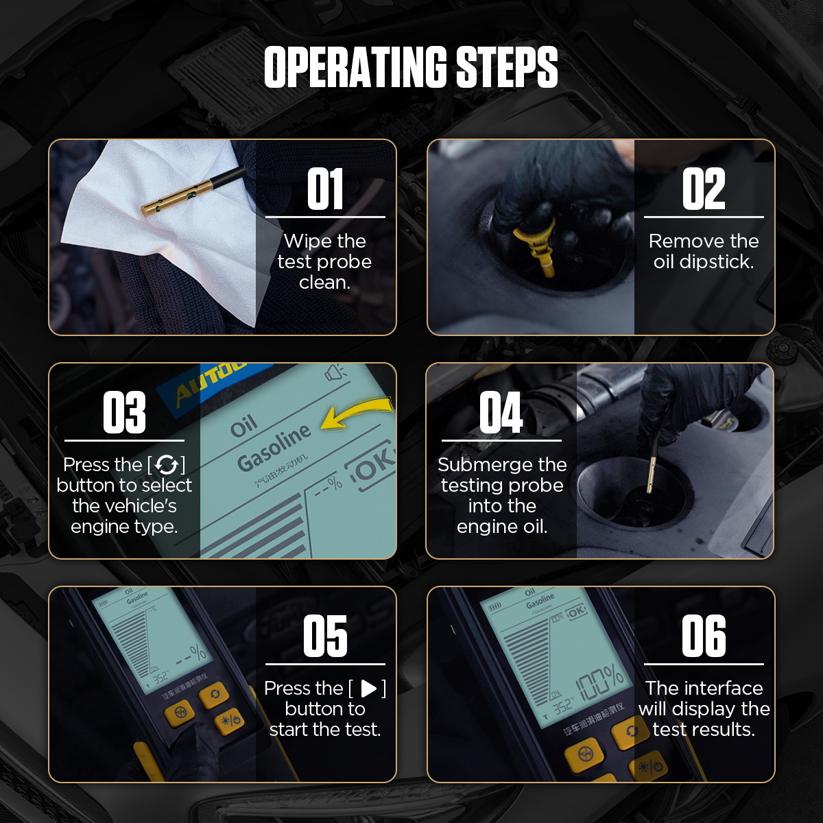 - Compatible with Various Lubricant Oil: Suitable for the majority of gasoline and diesel engine lubricant oils available in the market. Separate sampling and measurement for gasoline and diesel engines allow for a more precise assessment of lubricant oil.