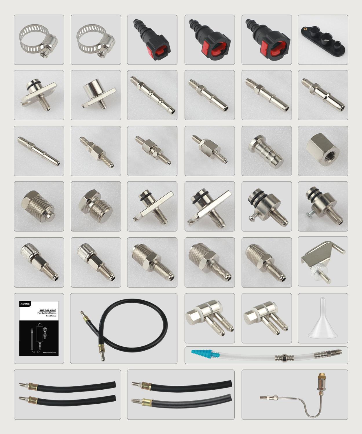 The injector clean kits include many different kinds of adapter, cover almost all the EU, Asia, USA cars and light trucks. Non-Dismantle injector Throttle and fuel system. The system is not only characteristic of high and low pressure cleaning function. At the same time put the function of the whole combustion chamber fuel system of several major functions in one product, such as cleaning throttle valve and the fuel nozzle.