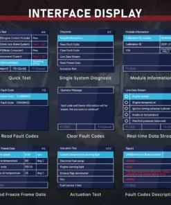 - Supports scanning, identification, and code reading of all systems of the current model, and reports the assembly status of all systems and whether there are fault codes for each system.