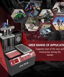 This machine features a user-friendly interface and easy-to-operate controls, making it suitable for use by both professional mechanics and any motorcycle owner. It also has a built-in ultrasonic cleaner tank that holds the cleaning solution, and a control panel that allows you to set the cleaning time and frequency.