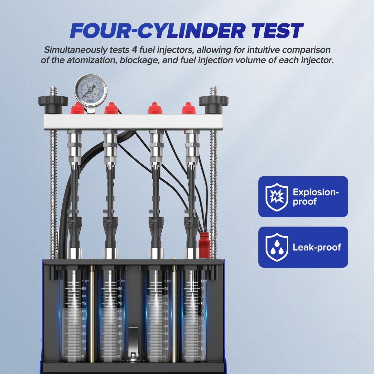 - 9 test modes: Supporting simulation of various actual engine working conditions, simultaneous injector performance test, you can quickly compare the condition of the injector nozzles.