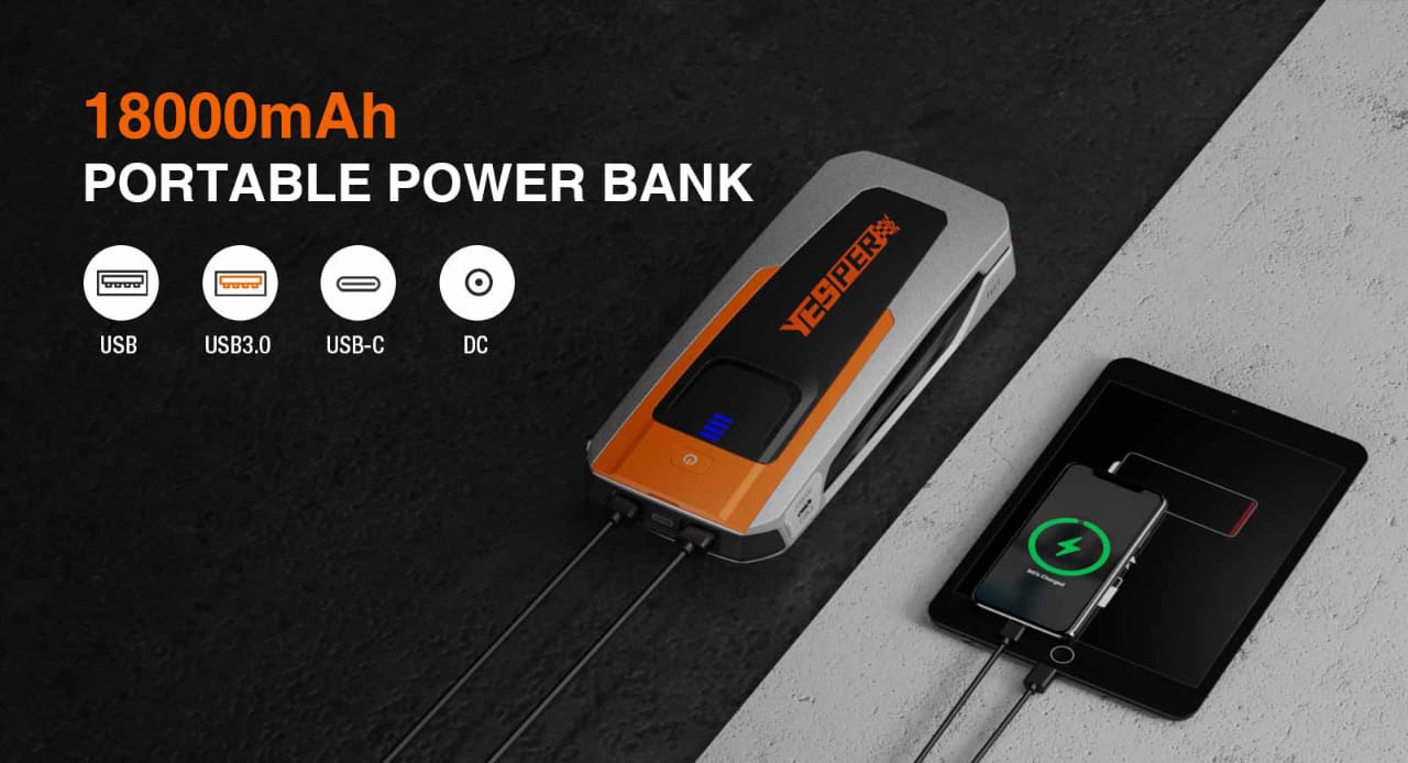 Not only can it jump start your car, it can also charge your multiple devices on the road, with 2 USB ports and Type-C port, power all your needs.